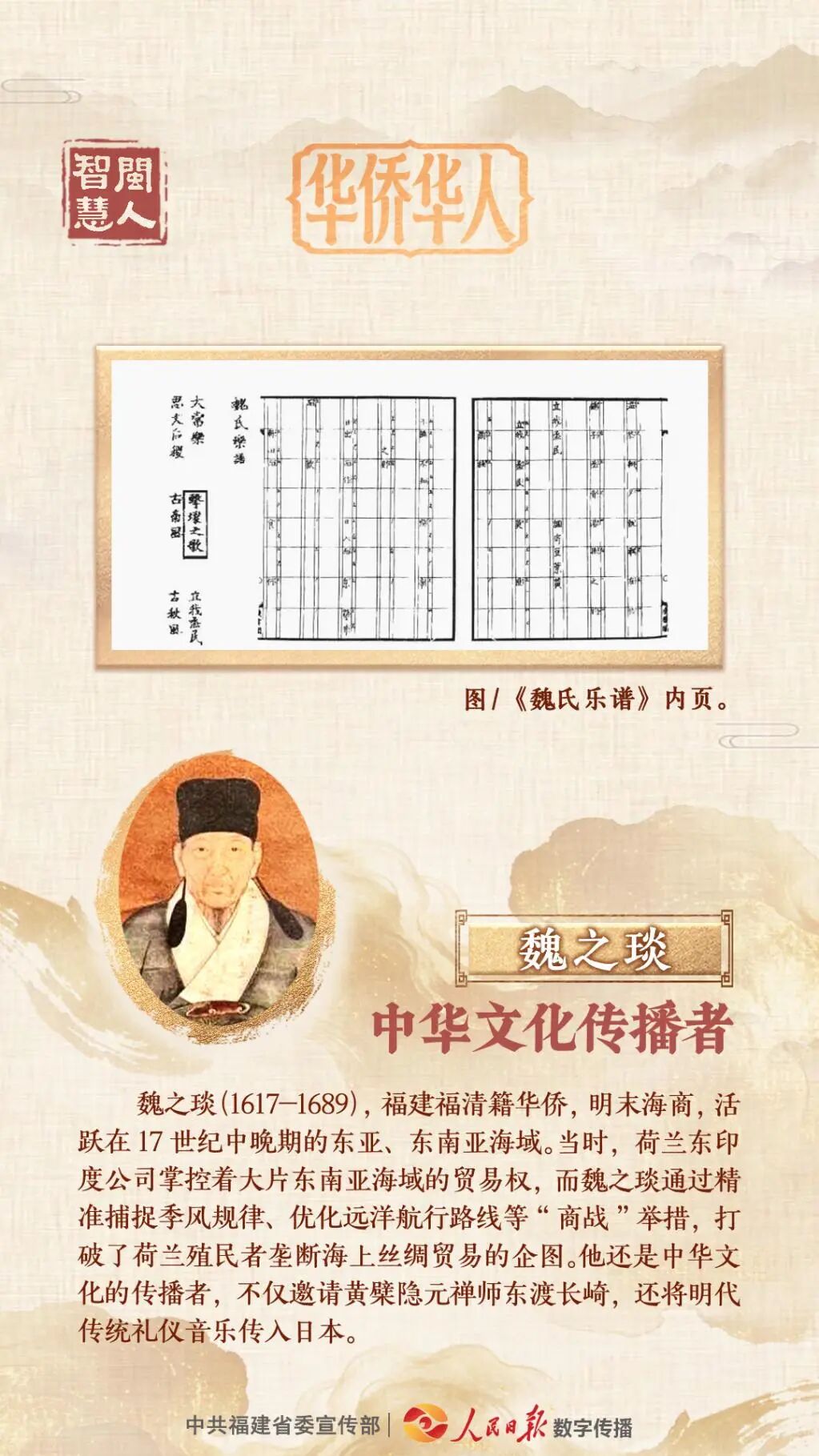 福清籍华侨魏之琰,精准捕捉季风规律、优化远洋航行路线等“商战”举措,打破了荷兰殖民者垄断海上丝绸贸易的企图;黄嘉略作为用法语编写汉语字典第一人,为法国人打开了了解中国语言文化的大门;邱菽园大力弘扬中华文化,积极推动新加坡华文教育的发展和中华优秀传统文化在华人社会的普及,被誉为“南侨诗宗”......